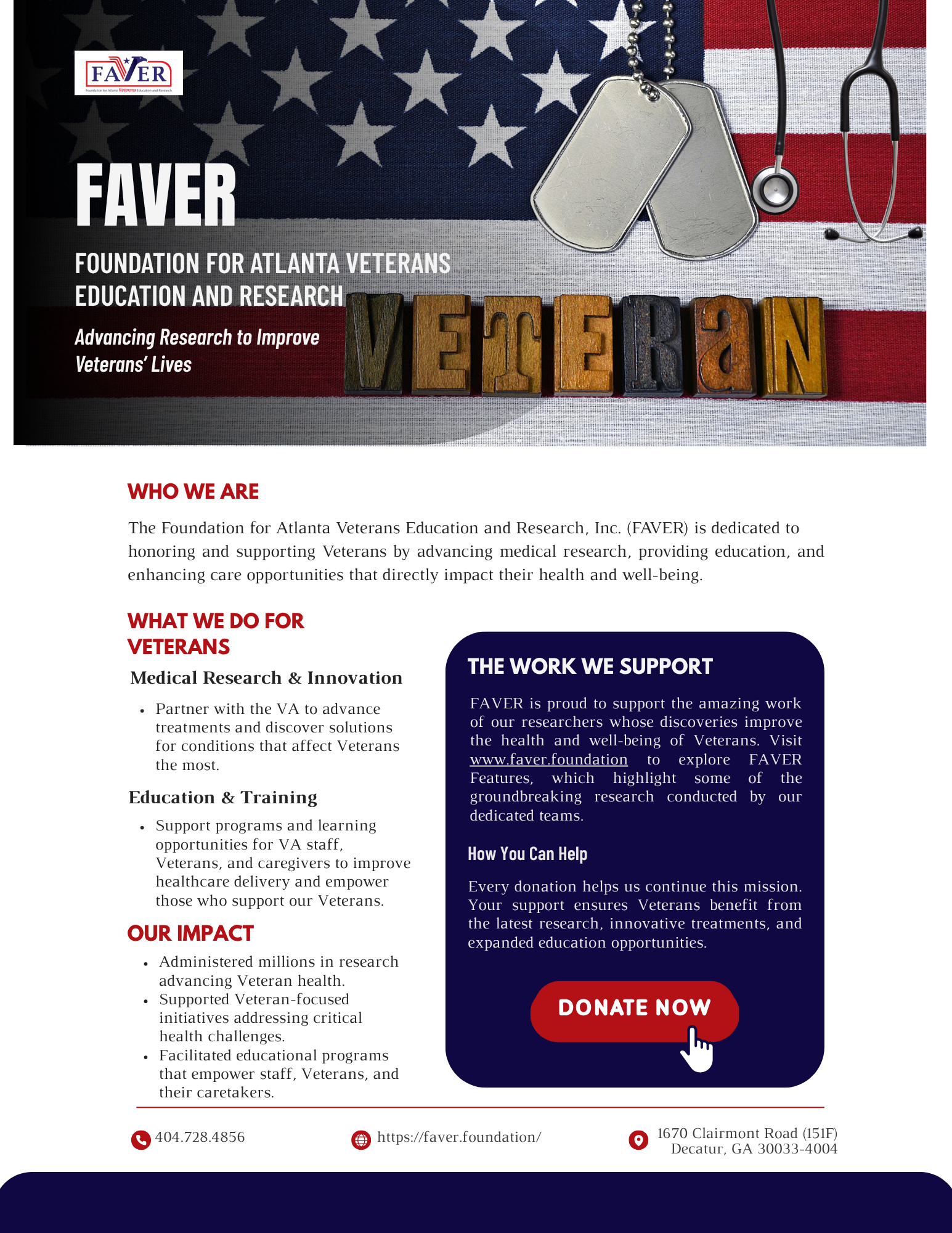 FAVER’s board is comprised of individuals with unique ties to the Veteran community and all are committed to fulfilling our mission: to facilitate, encourage, and support research and